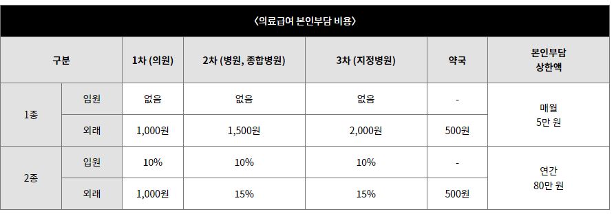 ▶급여대상 항목에 대한 의료비 중, 의료급여 본인부담 비용 금액을 제외한 전액 지원